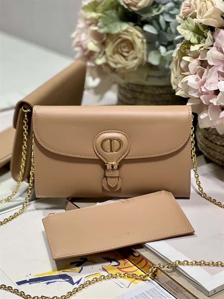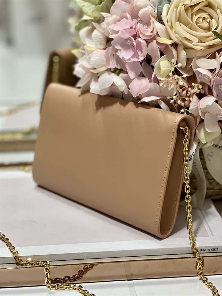 DIOR BOBBY EAST-WEST POUCH WITH CHAIN BEIGE SMOOTH CALFSKIN ; DOB101