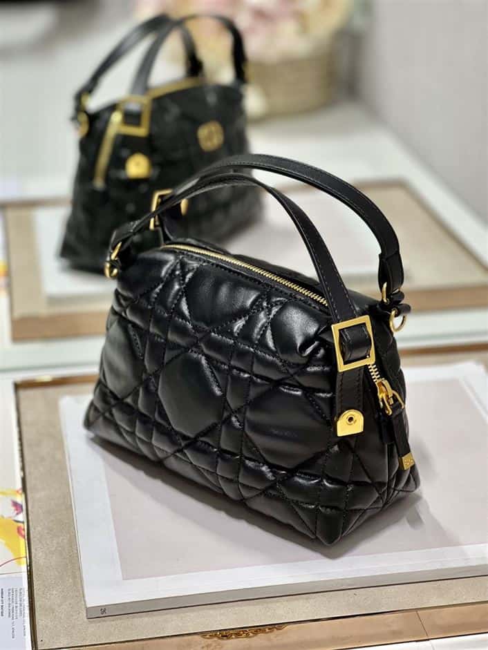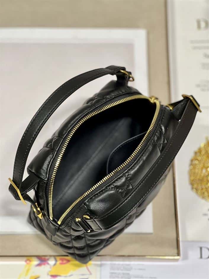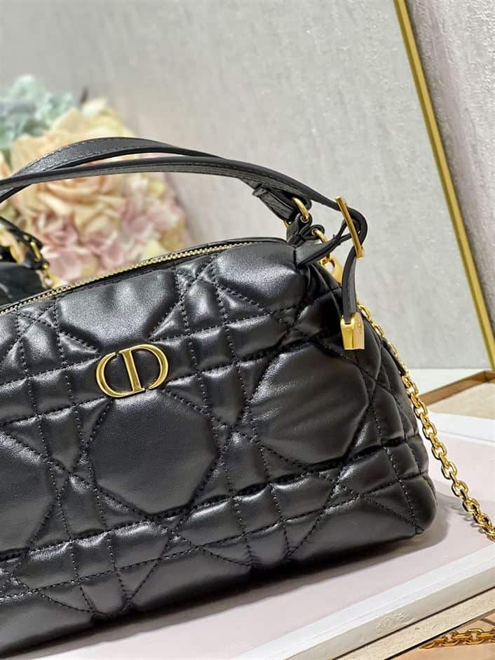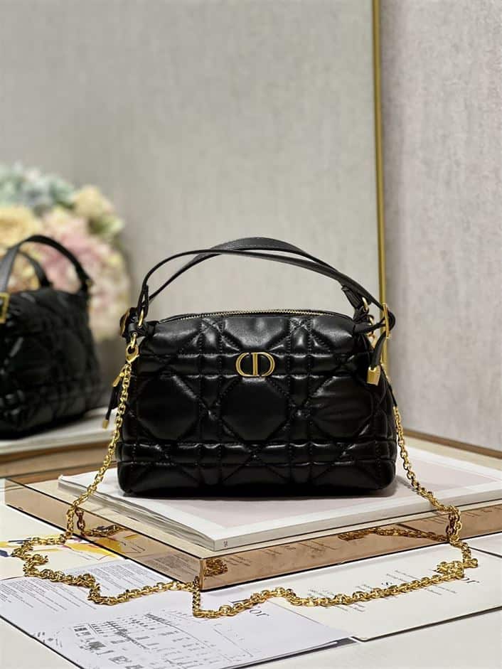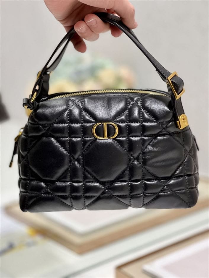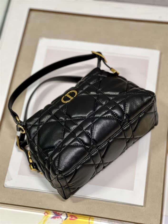 DIOR CARO D-COSY BAG BLACK SUPPLE CANNAGE CALFSKIN ; DOB087