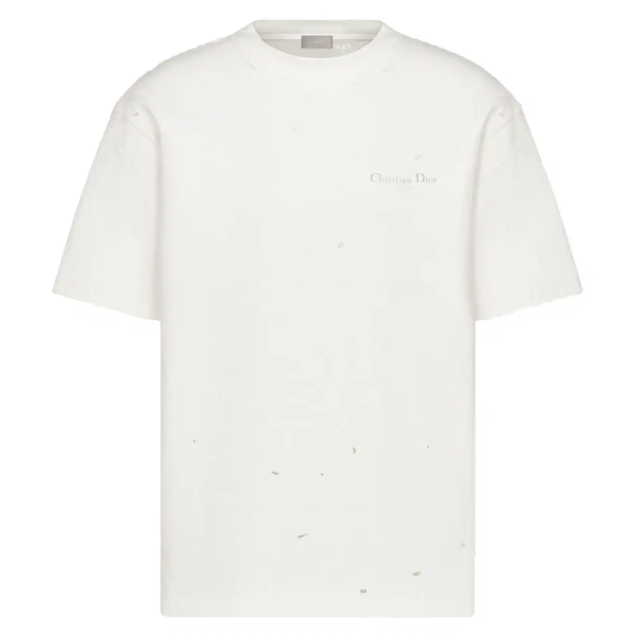 DIOR COUTURE T-SHIRT, RELAXED FIT WHITE DISTRESSED-EFFECT COTTON JERSEY ; DOT045