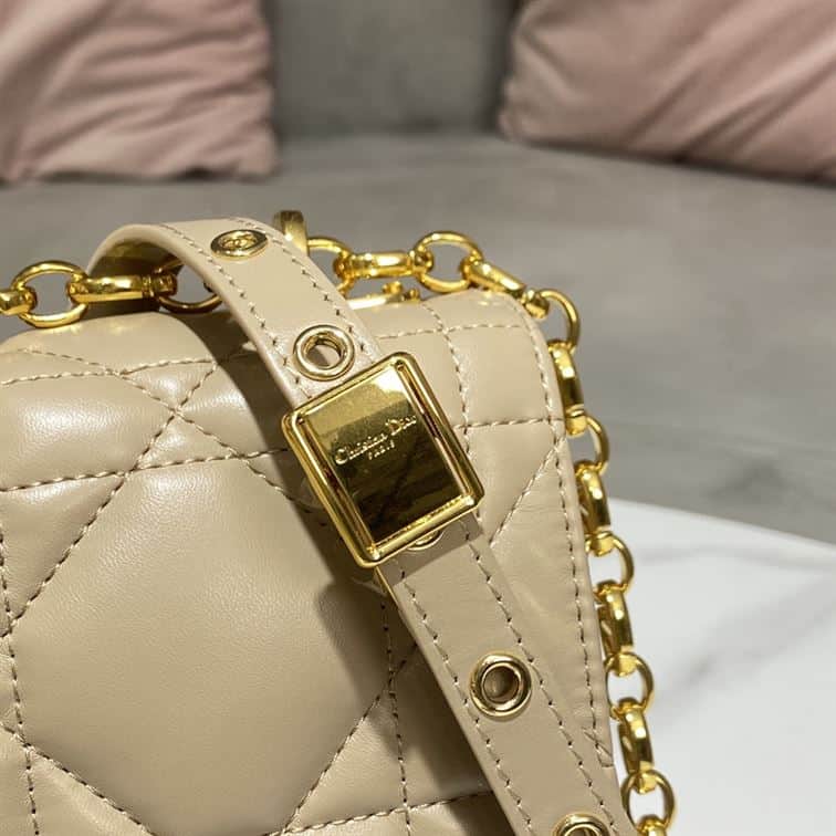 The Dior Medium Dior Caro Bag in Beige Quilted Macrocannage Calfskin is a sophisticated blend of classic elegance and modern style. Its medium size offers practicality for everyday use, while the ‘CD’ clasp closure and elegant chain strap add a touch of refinement. Versatile and chic, the Dior Caro Bag in beige effortlessly complements any wardrobe. Making it a coveted accessory for those who appreciate understated luxury and sophisticated charm.