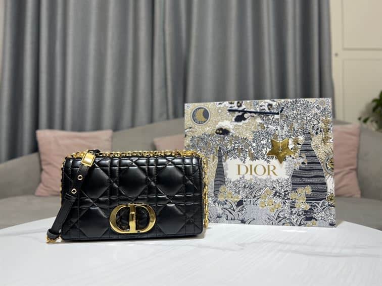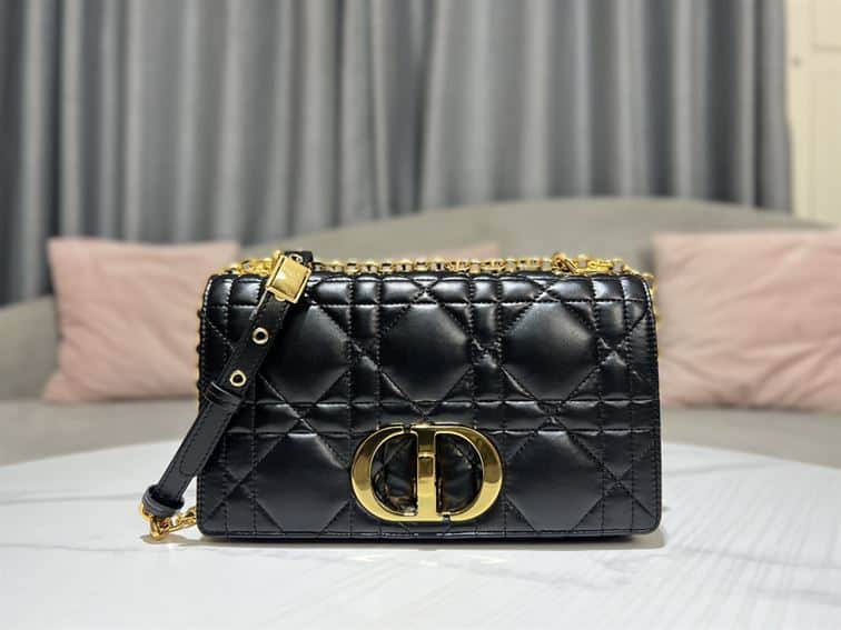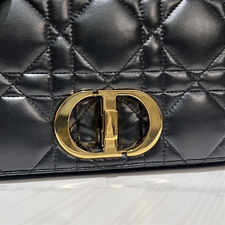 DIOR MEDIUM DIOR CARO BAG BLACK QUILTED MACROCANNAGE CALFSKIN ; DOB061