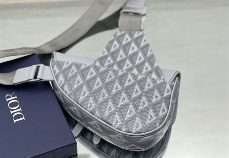 Experience the sophistication of the DIOR Mini Saddle Bag in gray CD diamond canvas and smooth calfskin. Elevate your style with this iconic accessory, blending elegance and contemporary design by Dior.
