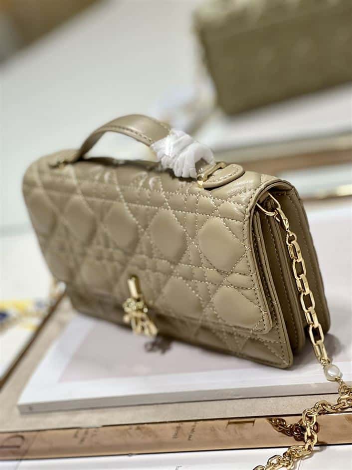 The Dior Miss Dior Mini Bag in Cannage Lambskin is a timeless symbol of elegance and luxury. Its compact size offers practicality without compromising style, making it ideal for both day and evening affairs. The bag features a delicate chain shoulder strap for effortless wear, allowing it to be carried gracefully over the shoulder or as a chic crossbody.