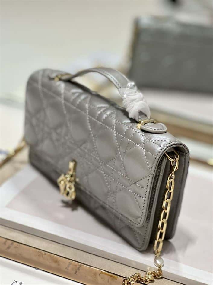 DIOR MISS DIOR MINI BAG GREY CANNAGE LAMBSKIN ; DOB058
