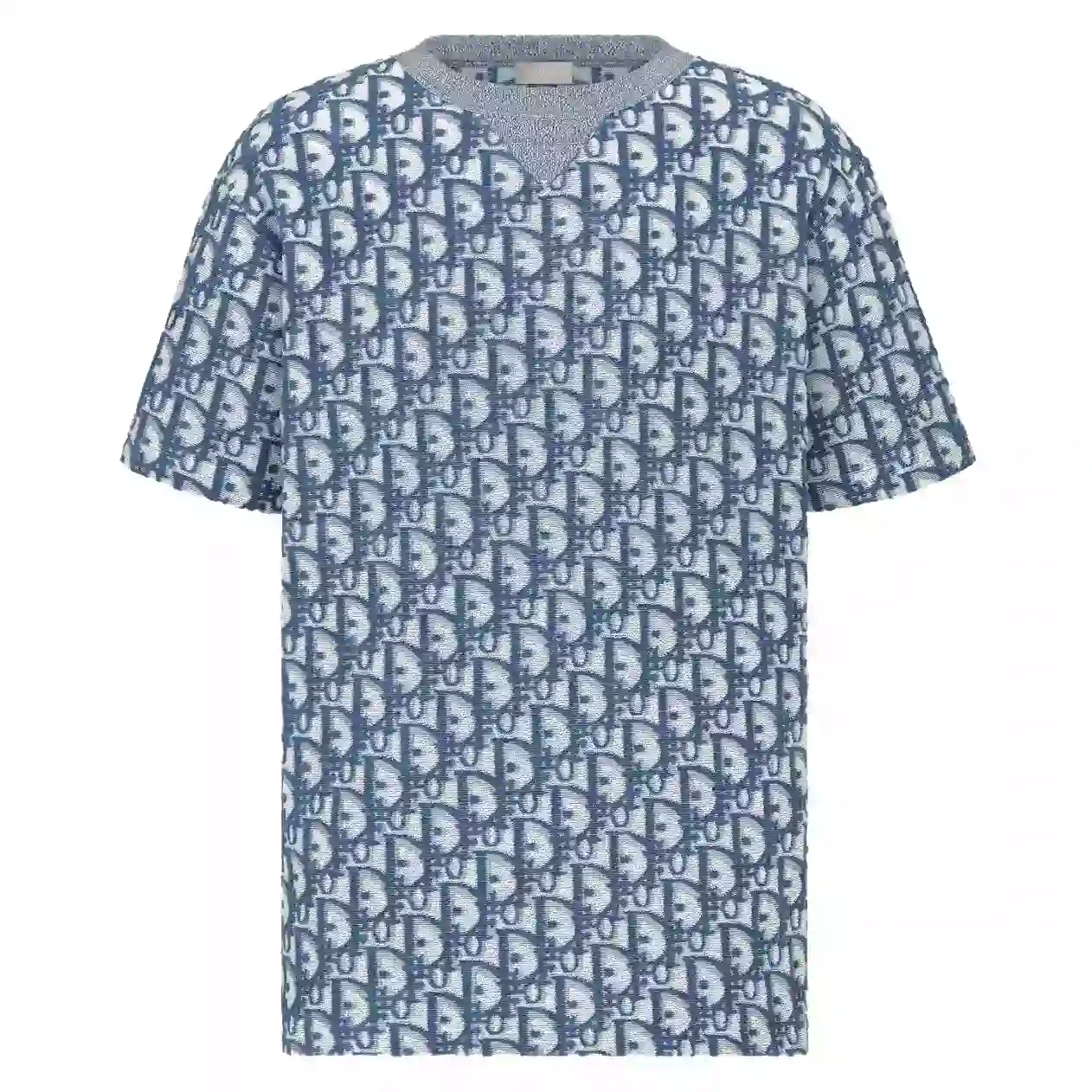 DIOR OBLIQUE T-SHIRT, RELAXED FIT BLUE AND WHITE TERRY COTTON JERSEYY ; DOT046