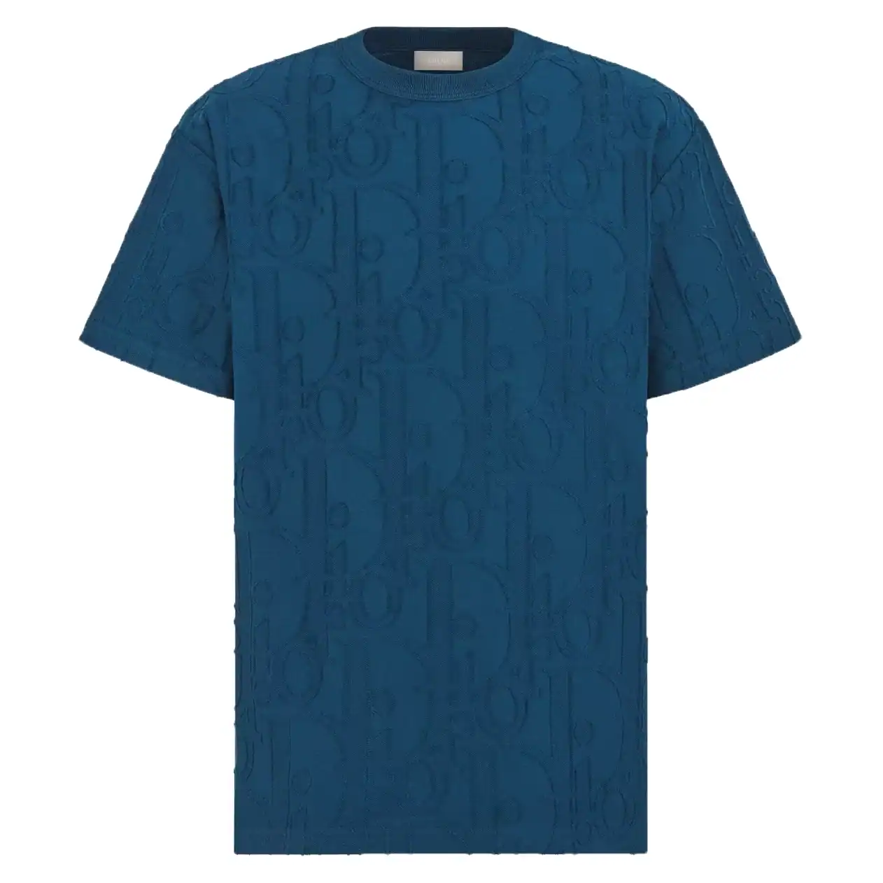 DIOR OBLIQUE T-SHIRT, RELAXED FIT DEEP BLUE COTTON JERSEY ; DOT041