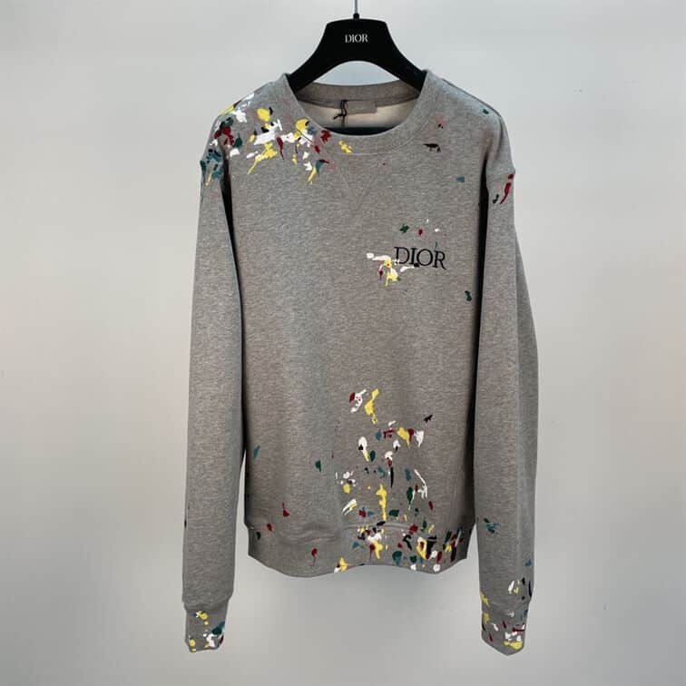 DIOR OVERSIZED SWEATSHIRT WHITE COTTON FLEECE WITH PAINT PRINT – DOS014