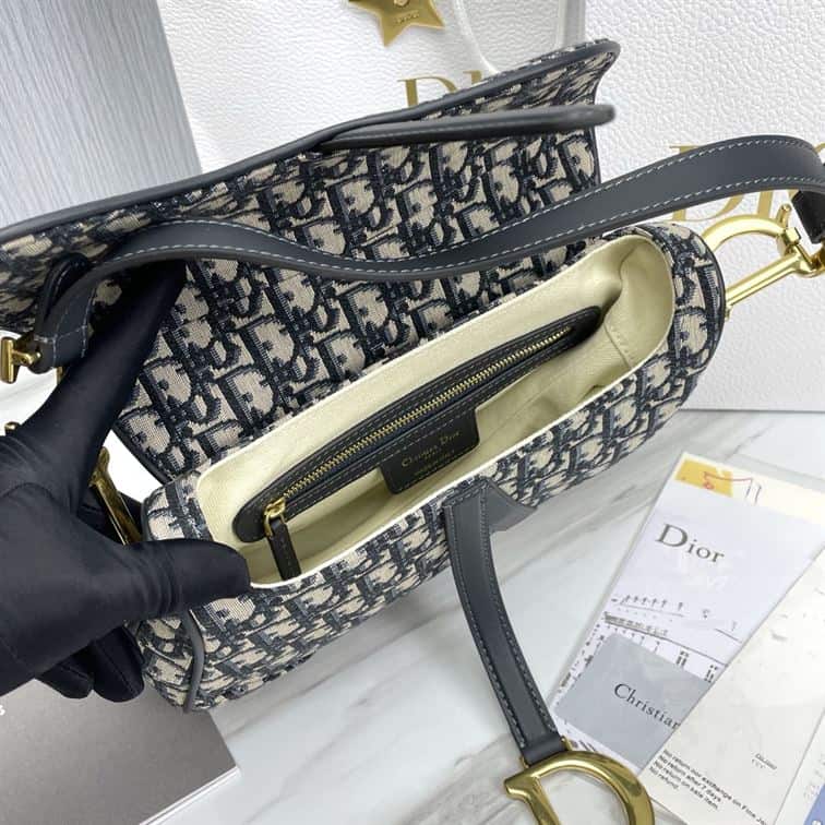 DIOR SADDLE BAG WITH STRAP BLUE DIOR OBLIQUE JACQUARD ; DOB032
