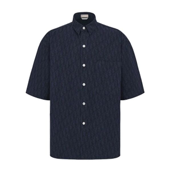 DIOR SHORT-SLEEVED OVERSHIRT NAVY BLUE AND BLACK DIOR OBLIQUE KASURI COTTON DENIM – DOT014