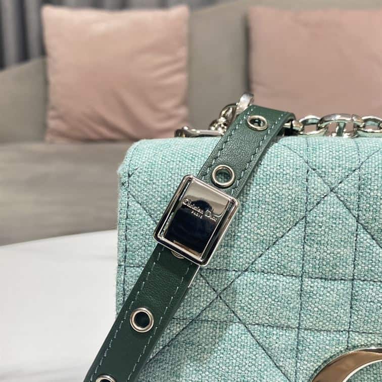 The Dior Small Dior Caro Bag in blue supple Cannage calfskin is a chic and elegant accessory that beautifully marries tradition with contemporary style. The bag’s compact size is perfect for carrying essentials while maintaining a sleek profile. Featuring the iconic ‘CD’ clasp, it embodies the timeless elegance of the Dior brand. Versatile and refined, it can be worn as a shoulder or crossbody bag, making it a stylish addition to any wardrobe.