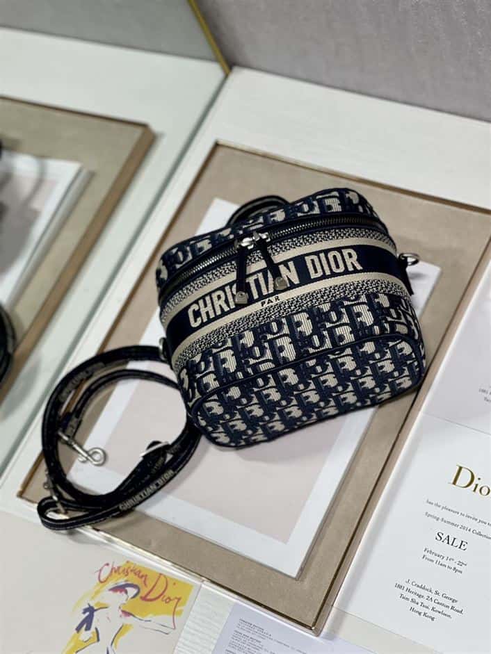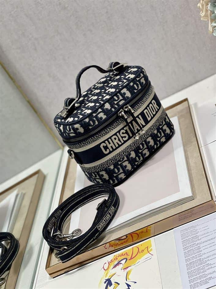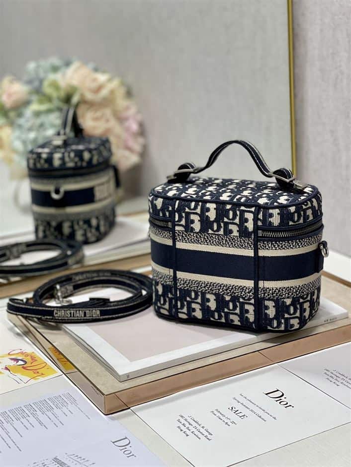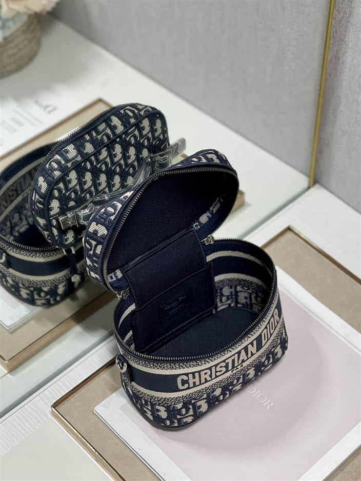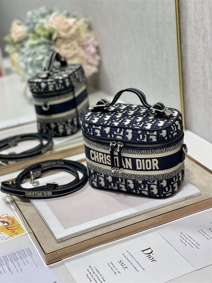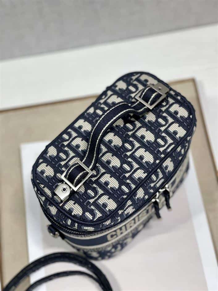 DIOR SMALL DIORTRAVEL VANITY CASE BLUE DIOR OBLIQUE EMBROIDERY ; DOB093
