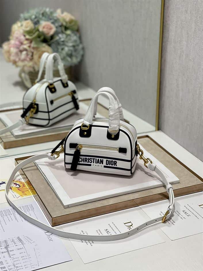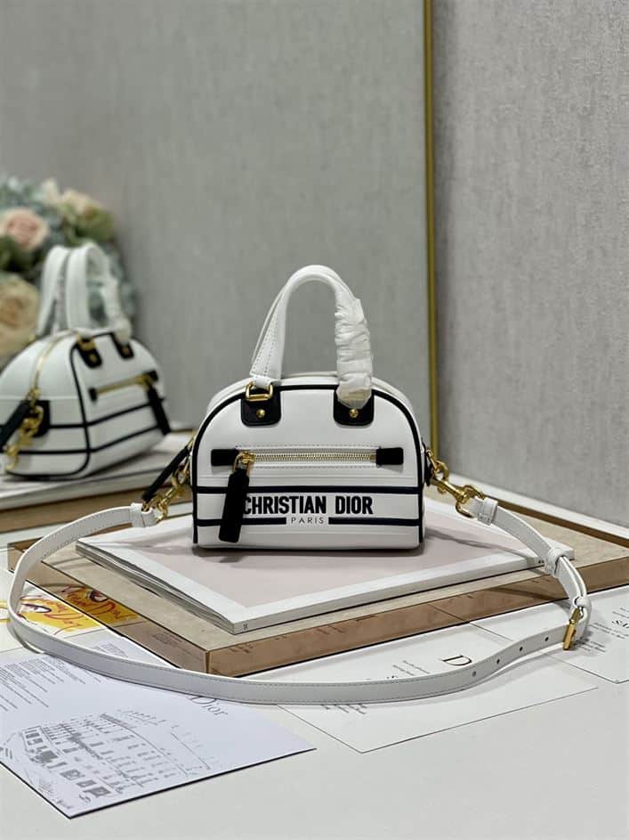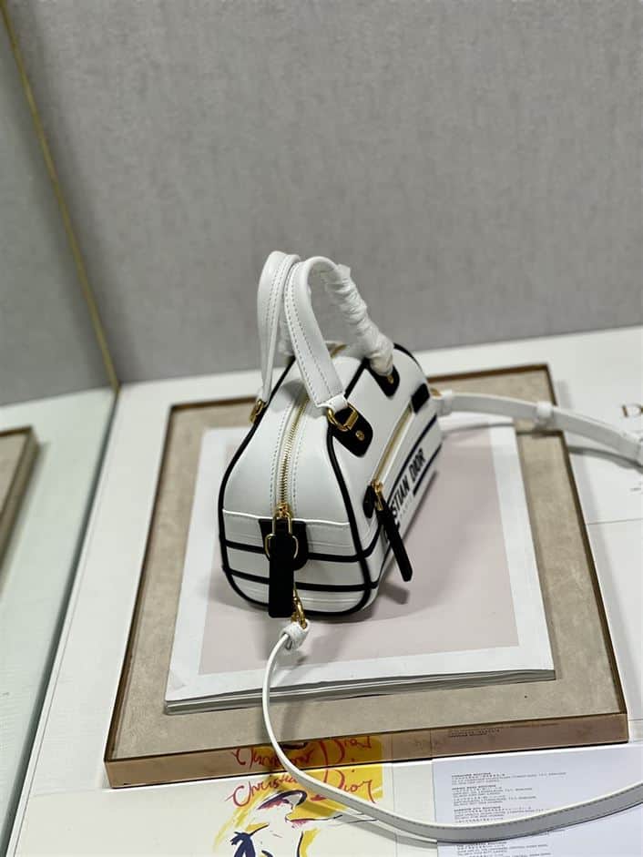 DIOR VIBE ZIP BOWLING MICRO BAG WHITE CALFSKIN ; DOB094