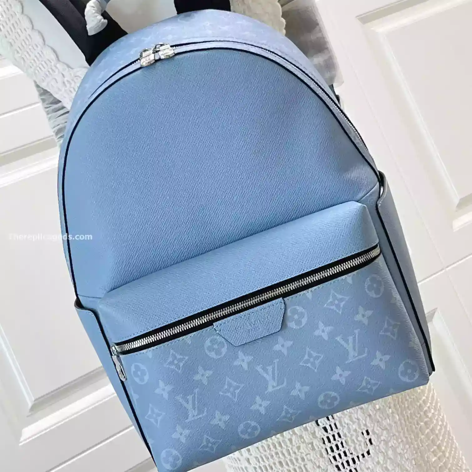 Discover the perfect blend of style and practicality with the Discovery Backpack PM in Sky Blue Monogram Canvas (LW321).