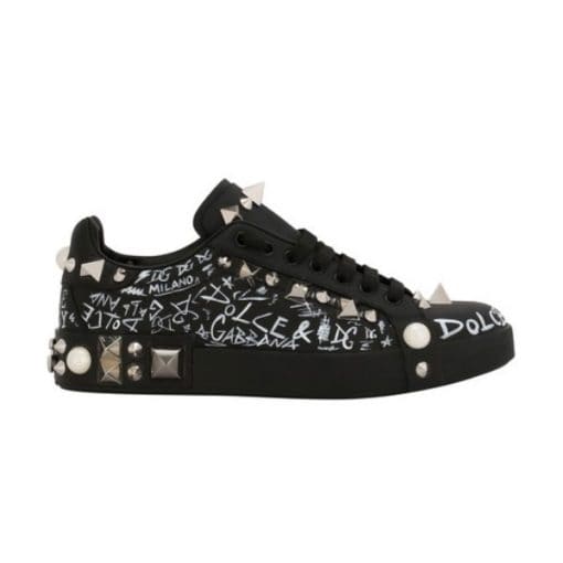 DOLCE & GABBANA CALFSKIN NAPPA PORTOFINO SNEAKERS WITH STUDS – DG018