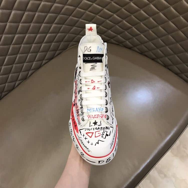 DOLCE & GABBANA HAND-PAINTED GRAFFITI CANVAS PORTOFINO LIGHT MID-TOP SNEAKERS – DG004