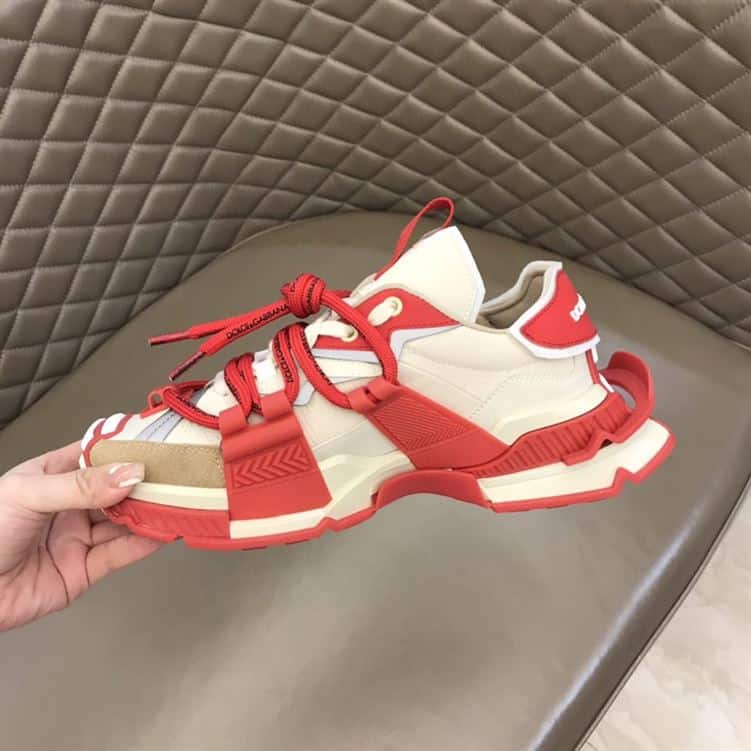 DOLCE & GABBANA MIXED-MATERIAL SPACE SNEAKRES IN RED – DG012
