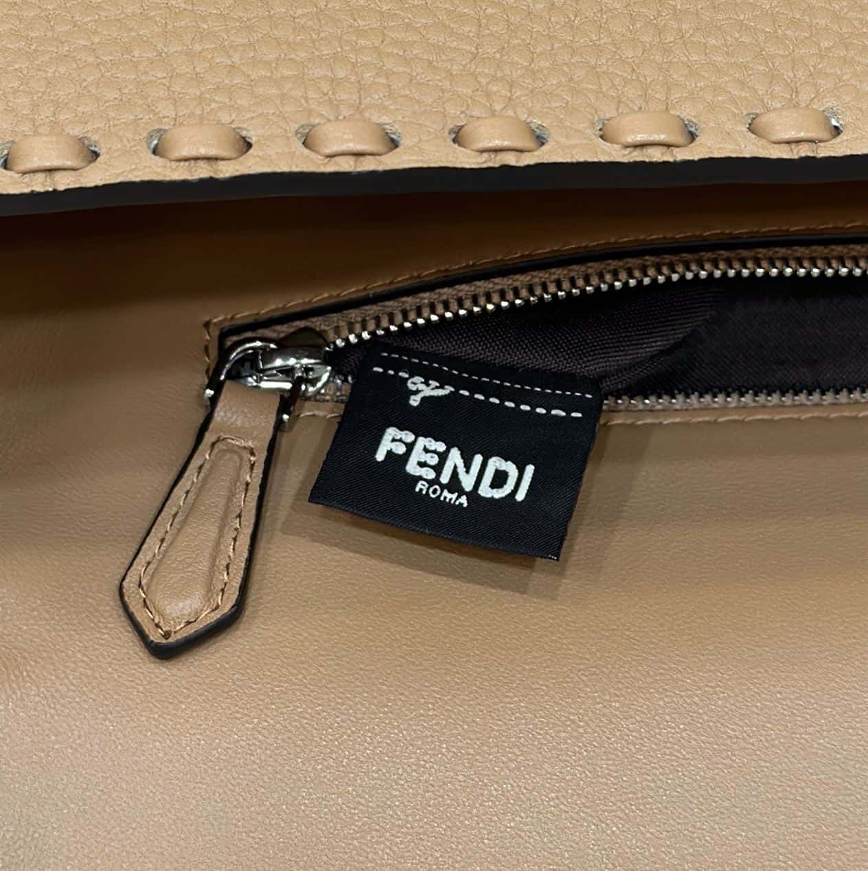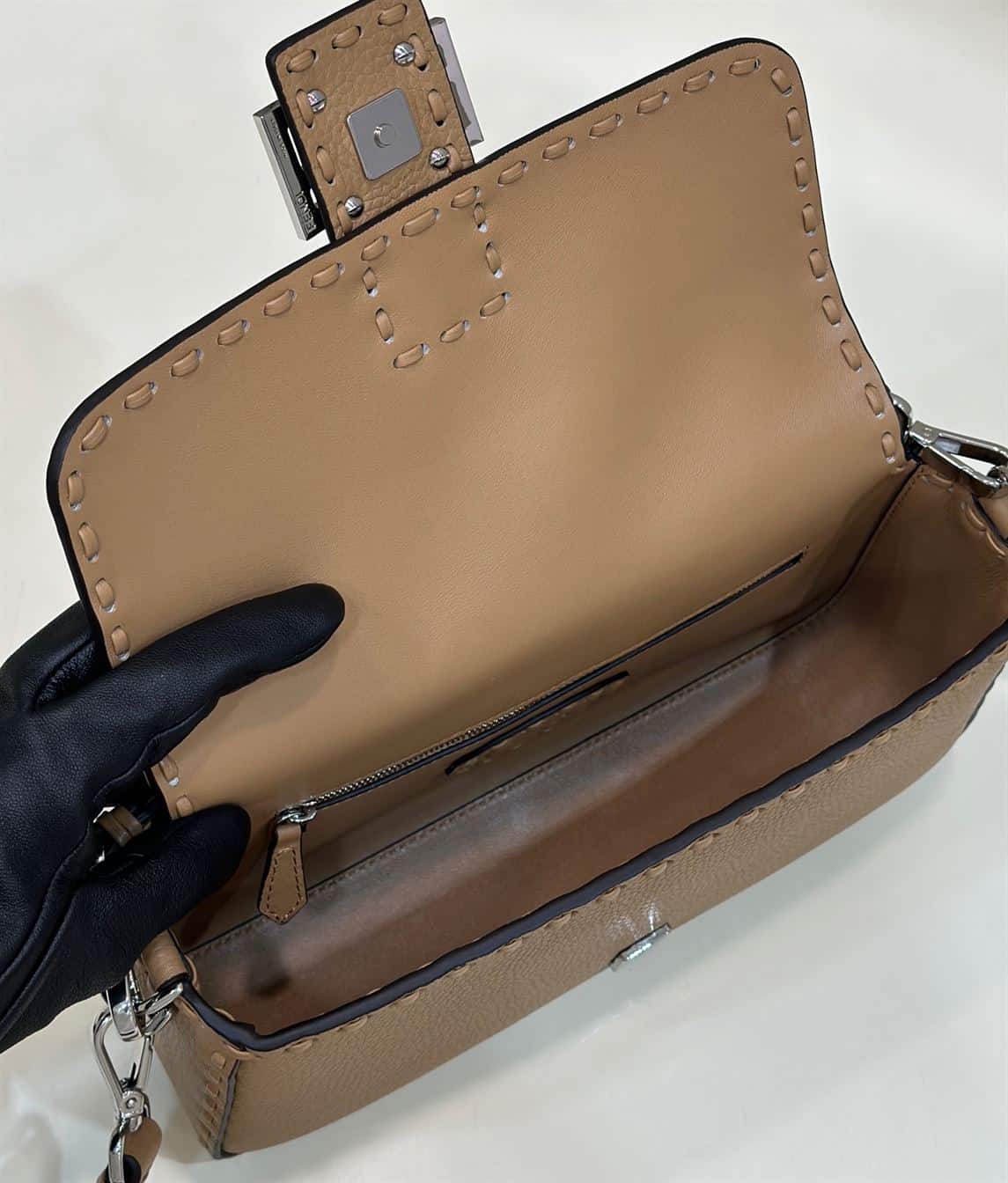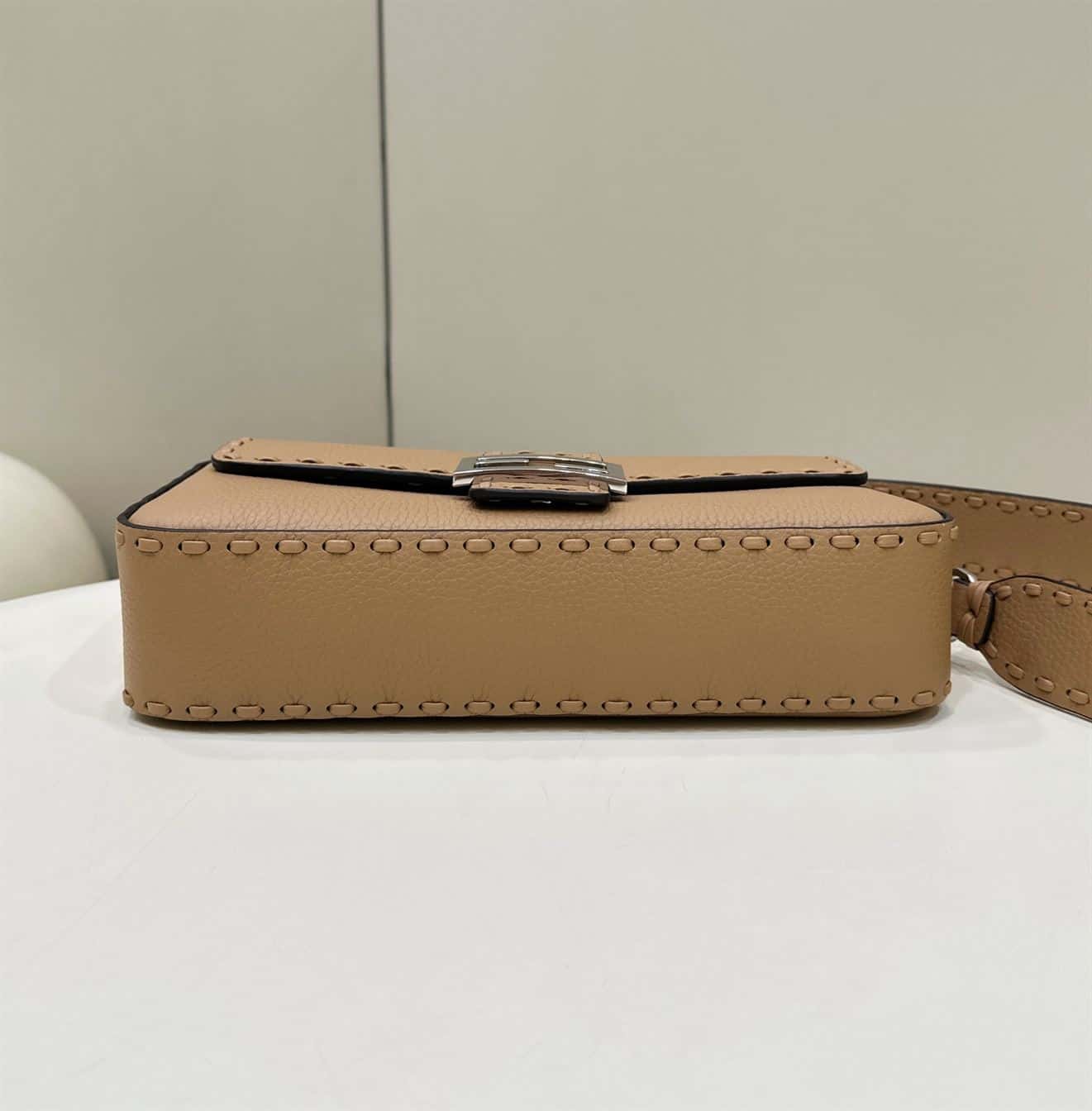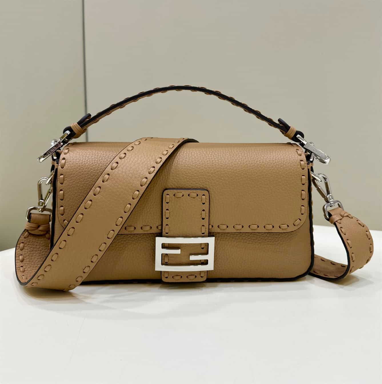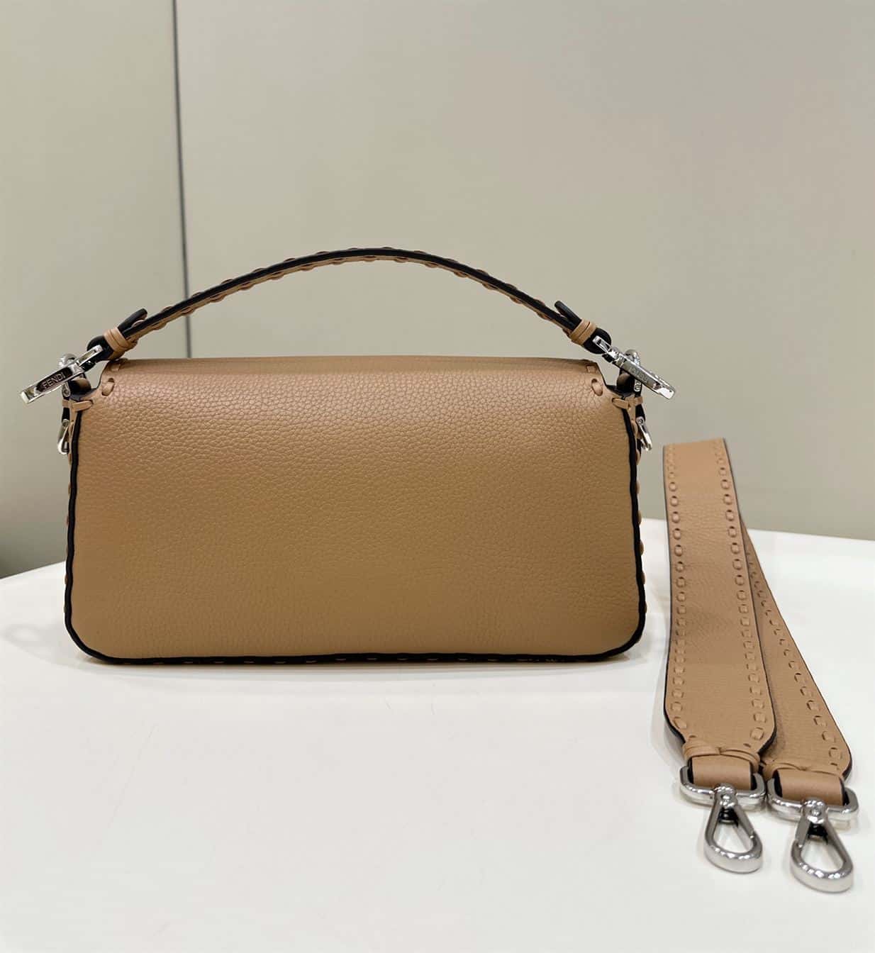FENDI BAGUETTE BEIGE SELLERIA BAG WITH OVERSIZE TOPSTITCHING – F028