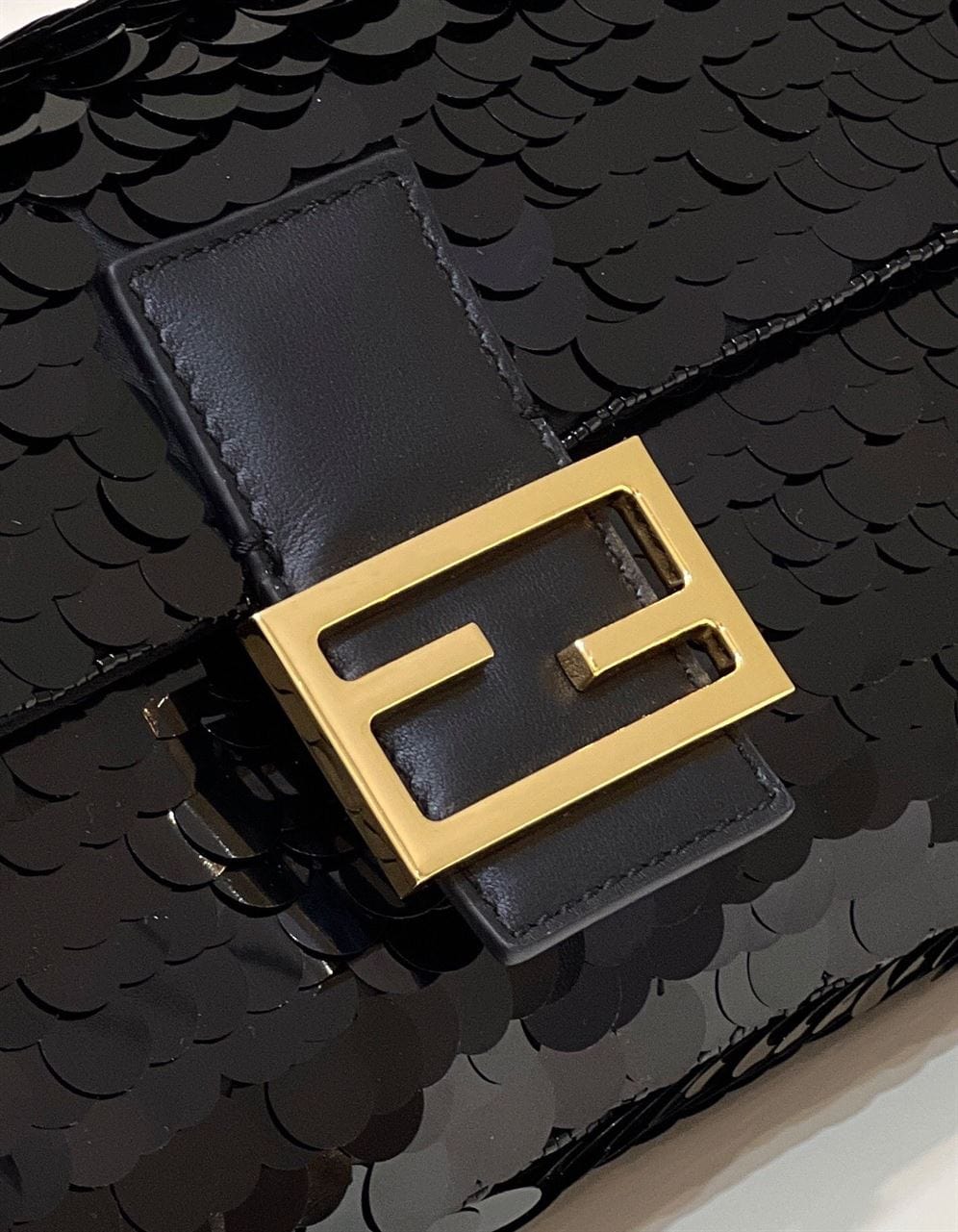 FENDI BAGUETTE BLACK SEQUIN AND LEATHER BAG – F003
