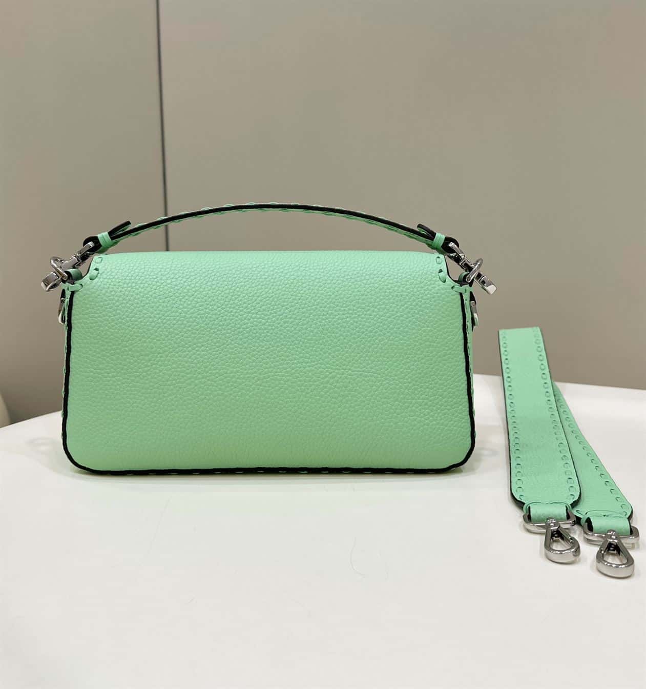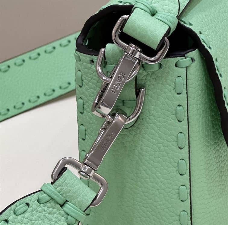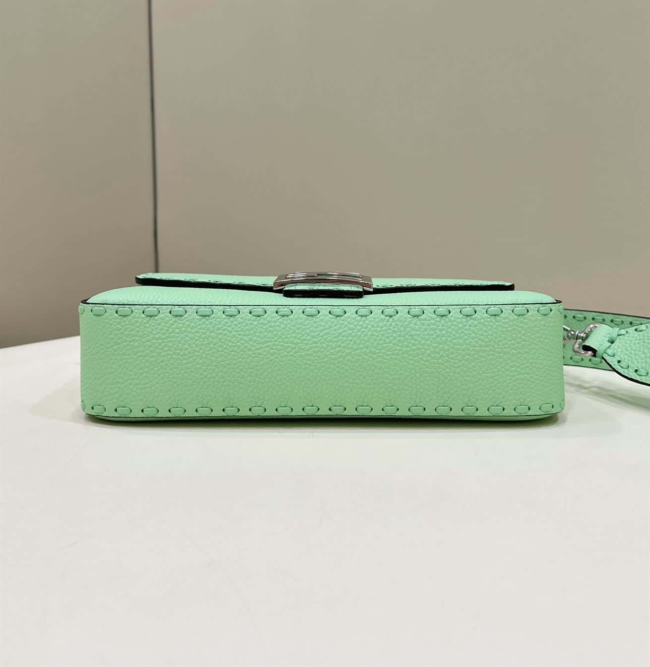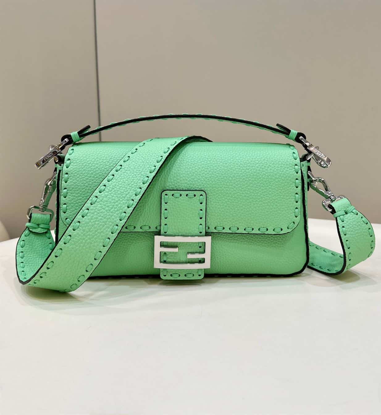 FENDI BAGUETTE GREEN SELLERIA BAG WITH OVERSIZE TOPSTITCHING – F031