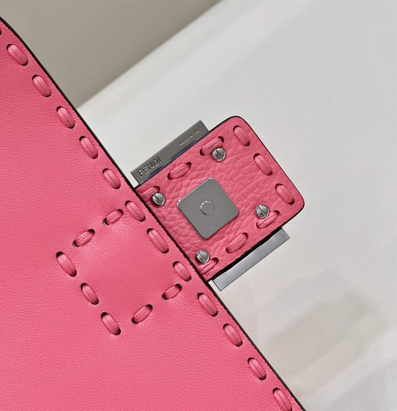FENDI BAGUETTE PINK SELLERIA BAG WITH OVERSIZE TOPSTITCHING – F030
