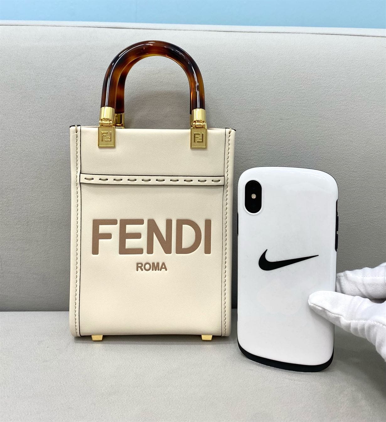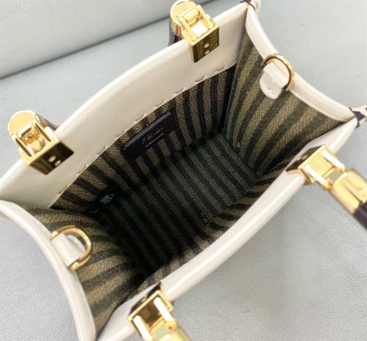 FENDI MINI SUNSHINE SHOPPER WHITE LEATHER MINI BAG – F012