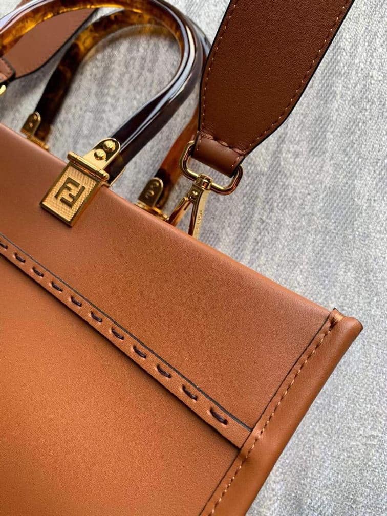 FENDI SUNSHINE MEDIUM BROWN LEATHER SHOPPER – F018