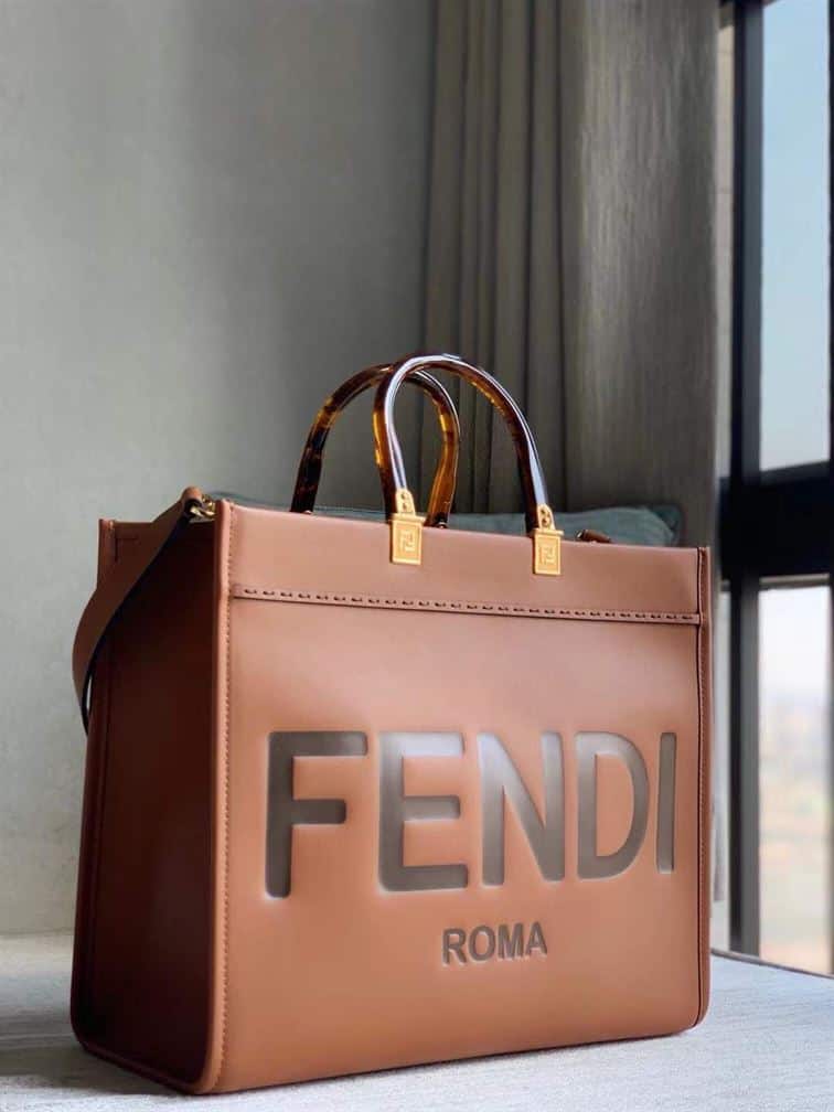 Introducing the Fendi Sunshine Medium Brown Leather Shopper, a stylish and versatile accessory perfect for any occasion. Crafted from luxurious brown leather, this shopper combines practicality with elegance, offering ample space for your essentials. The iconic Fendi logo and exquisite detailing add a touch of sophistication, making it a standout piece in your wardrobe. Ideal for both work and leisure, the Sunshine shopper effortlessly elevates your everyday look.
