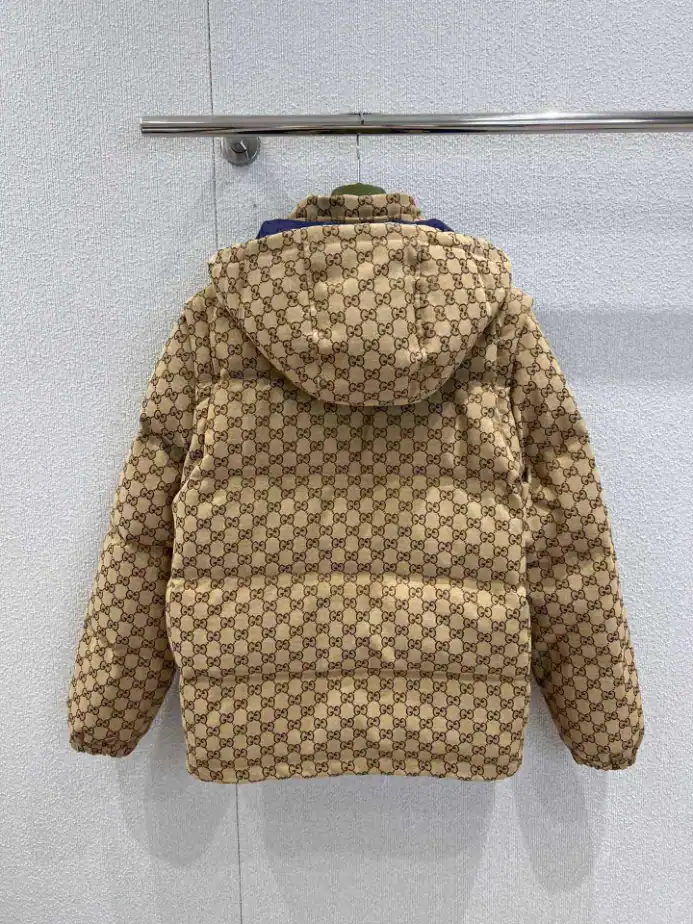 GG Canvas Down Jacket in Camel and Dark Brown ; GCJ056