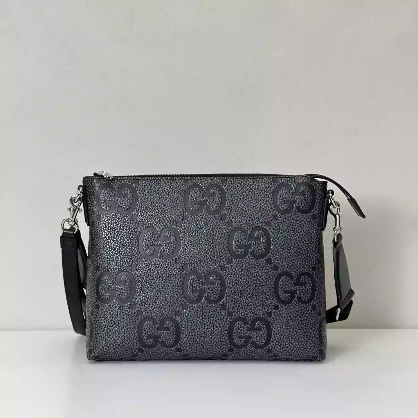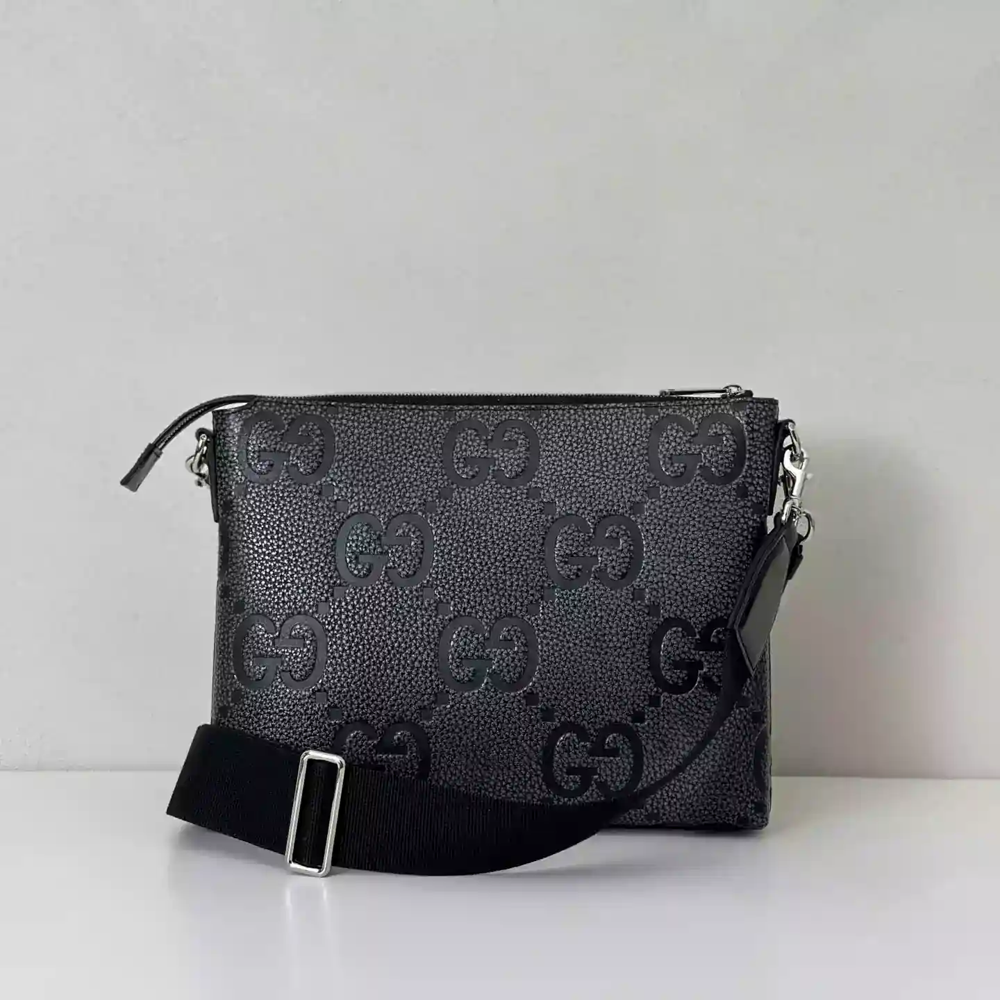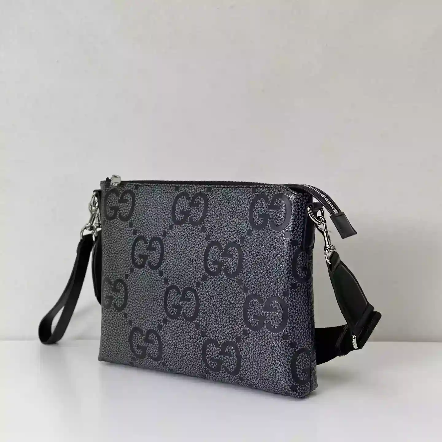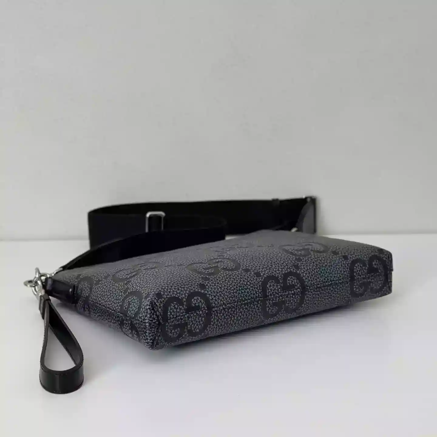 The GG Jumbo Medium Crossbody Bag in grey and black GG leather (model BG079) is the perfect blend of classic design and modern edge.