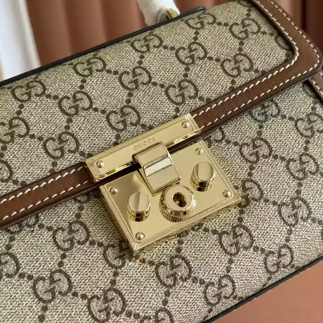 Discover timeless elegance with the GG Supreme Padlock Small Shoulder Bag ; BG081.