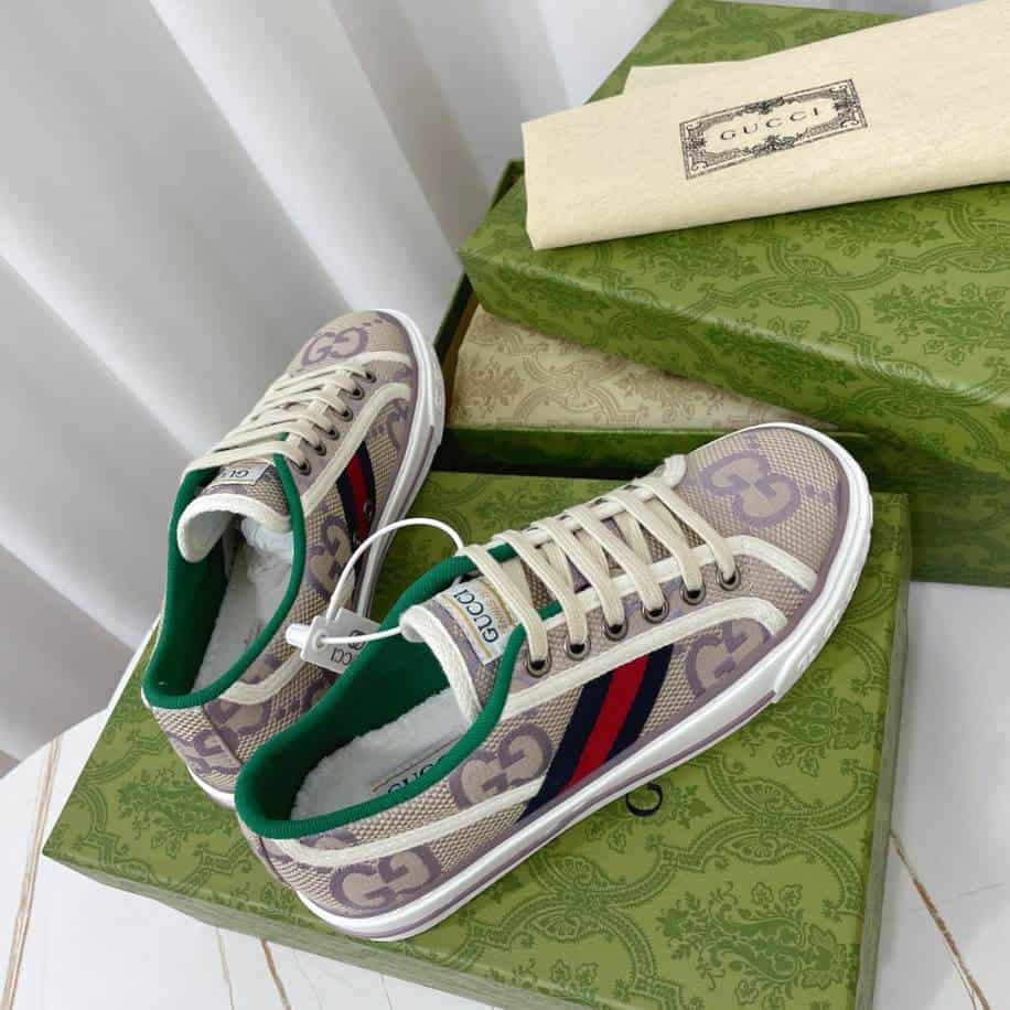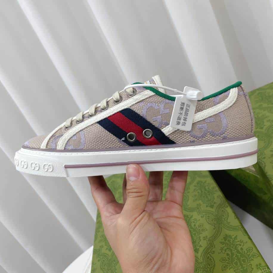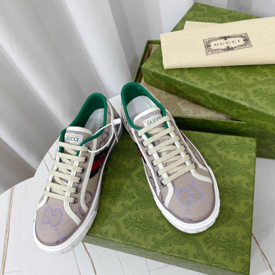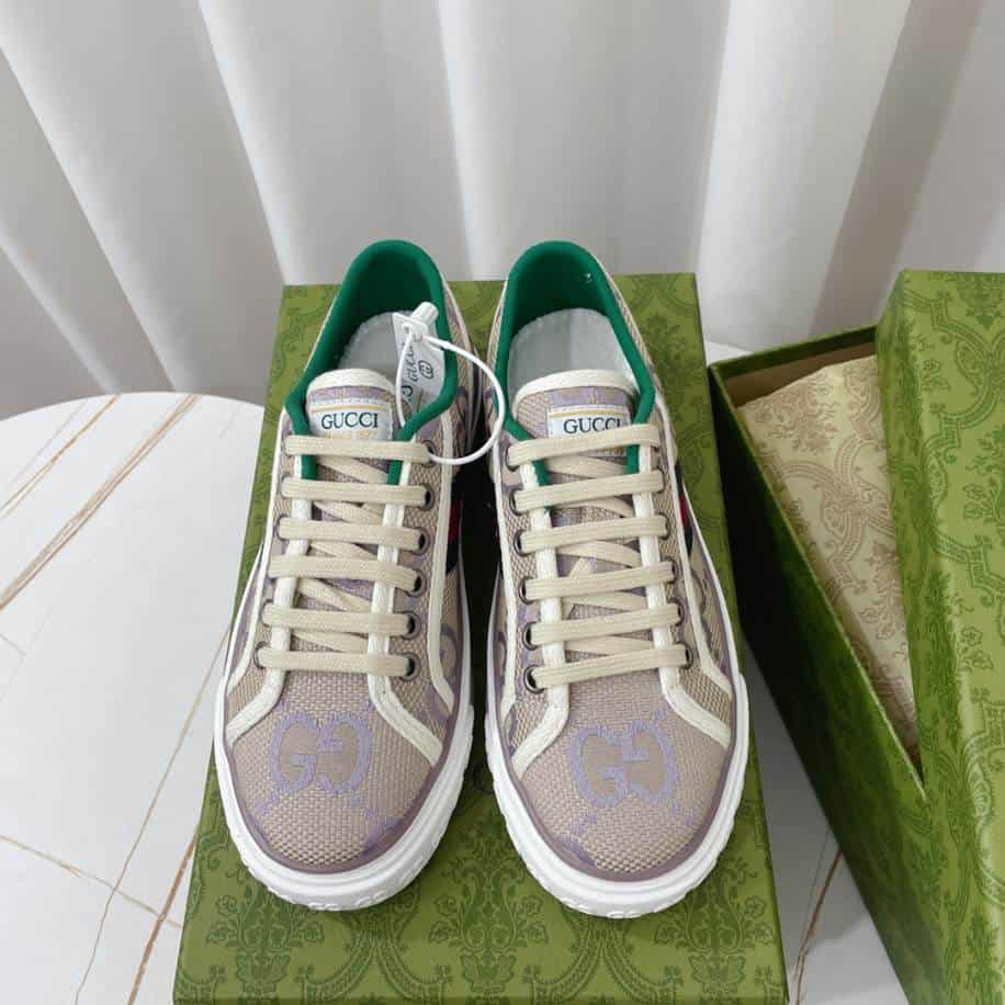 The Gucci Beige Lilac Jumbo Tennis Sneakers replica offers a unique blend of soft, neutral tones with a pop of color, combining elegance and playful charm. Featuring a beige base with lilac accents, these sneakers exude a fresh, trendy vibe while maintaining the classic, sophisticated look associated with the luxury brand. Though not an authentic pair, this replica successfully captures the essence of the original’s design. Offering an affordable alternative for fashion-forward individuals. Ideal for casual wear, these sneakers add a touch of high-fashion style and comfort to any outfit.