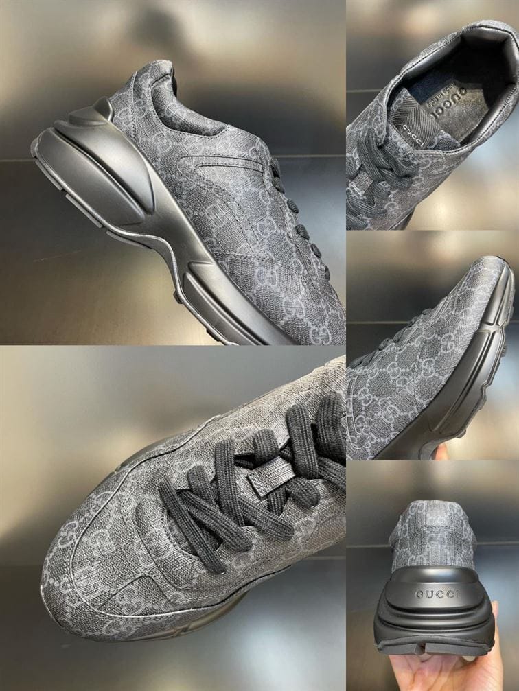 GUCCI BLACK RHYTHON MONOGRAM-PRINT CANVAS LOW-TOP SNEAKERS – GCC102