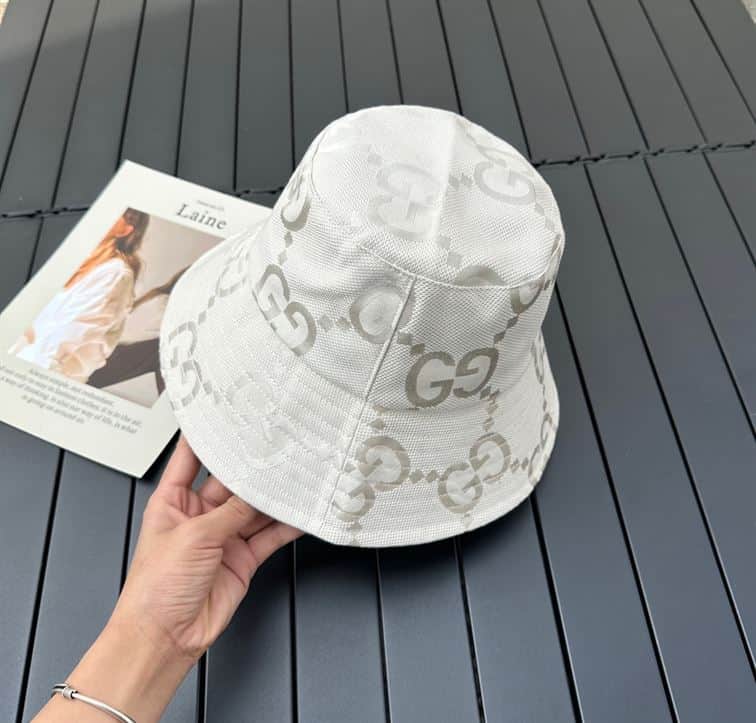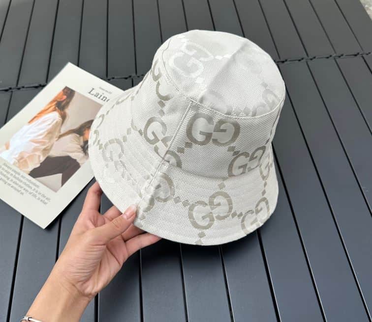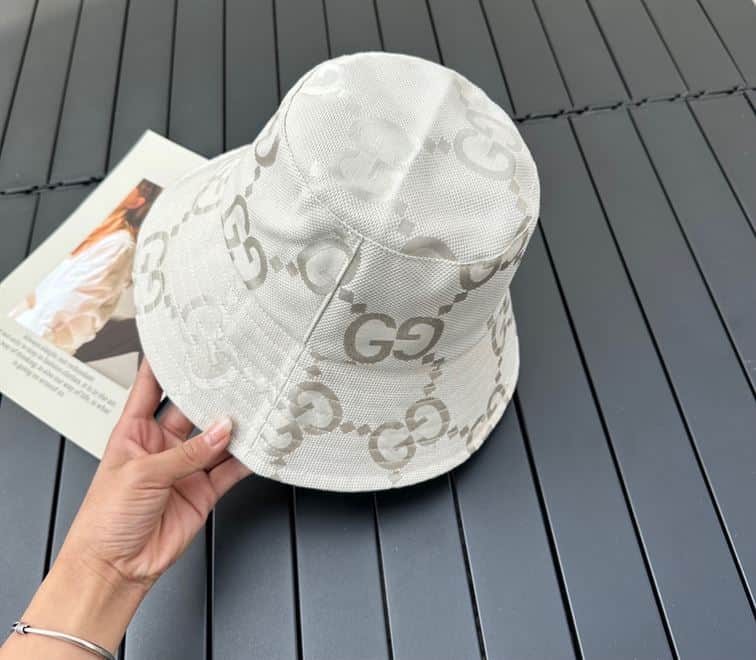The Gucci Bucket Hat is a chic and versatile accessory that seamlessly blends modern fashion with timeless design. Crafted from high-quality materials, this hat often features the iconic GG monogram or other signature Gucci details, adding a touch of luxury to its casual silhouette.
