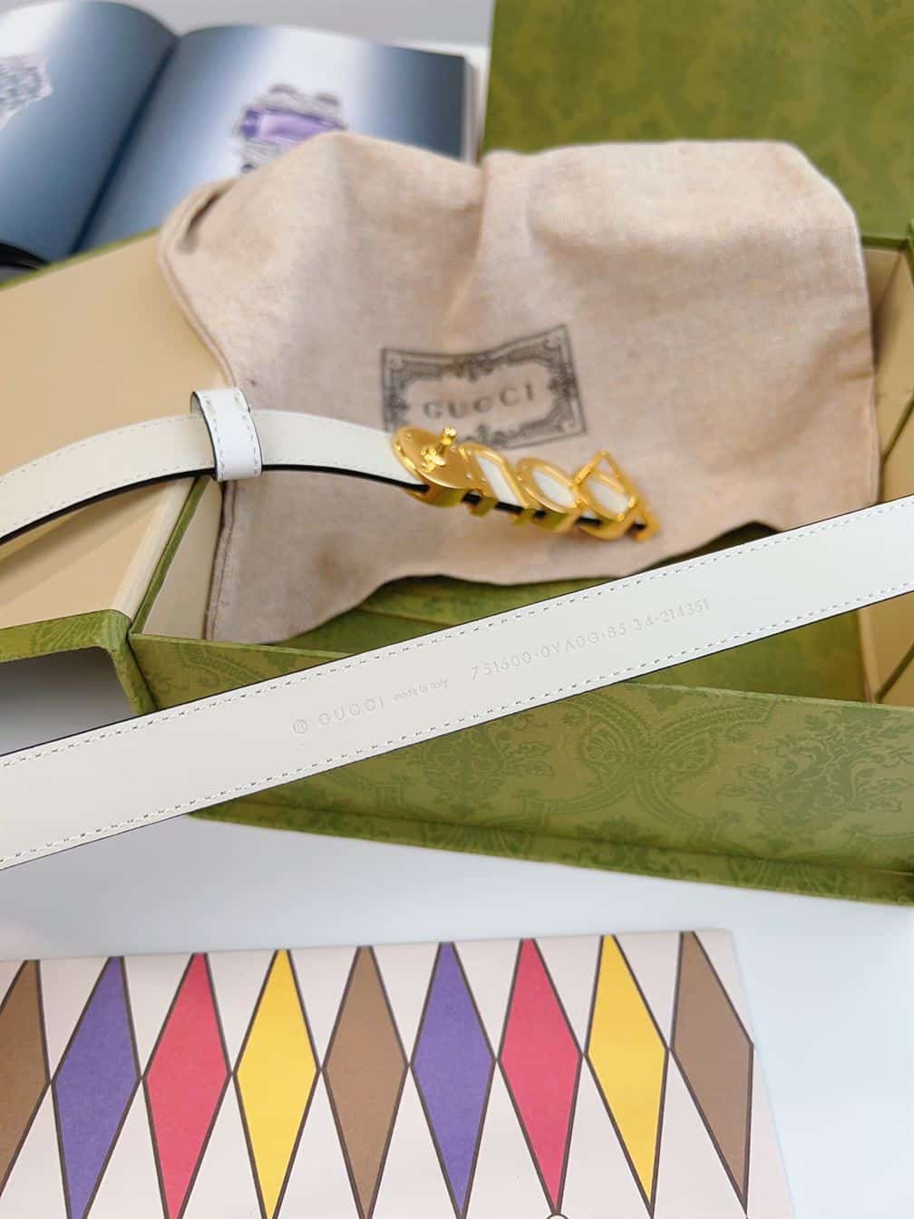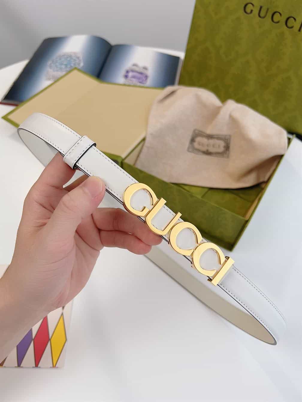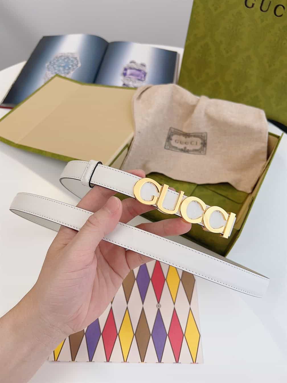 GUCCI BUCKLE THIN BELT WHITE LEATHER – GB023