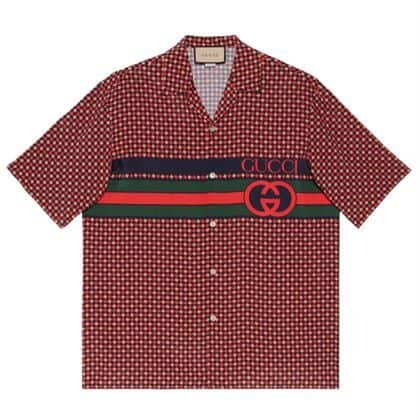 GUCCI GEOMETRIC HOUNDSTOOTH PRINT BOWLING SHIRT – GGS026
