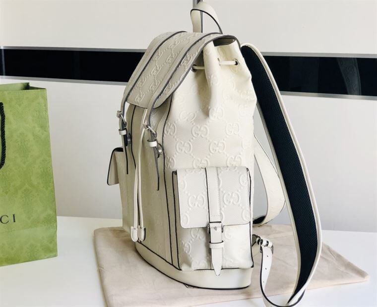 The Gucci GG Embossed Backpack is a striking embodiment of Gucci’s iconic design and luxury craftsmanship. Its spacious interior offers practicality with ample room for daily essentials, making it suitable for various lifestyles. Featuring adjustable shoulder straps for comfort and versatility, along with meticulous detailing, the Gucci GG Backpack is a standout accessory for those who value both fashion-forward aesthetics and functional design in their everyday attire.