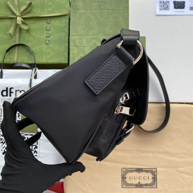 - The Gucci GG Guccissima Black Nylon Messenger Bag is a sleek and versatile accessory that exemplifies Gucci’s blend of modernity and classic elegance. Its spacious interior and well-designed compartments provide ample room for daily essentials. While the adjustable shoulder strap ensures comfortable, customized wear.
