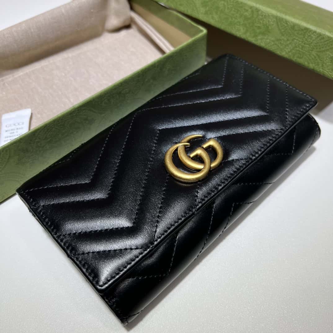 Elevate your everyday elegance with the GUCCI GG Marmont Continental Wallet ; WLG043. Crafted from premium matelassé leather, this luxurious wallet showcases Gucci’s signature GG logo in antique gold-tone hardware, adding a touch of timeless sophistication