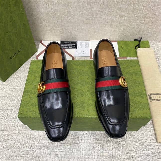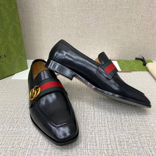 GUCCI GG WEB BLACK LEATHER LOAFER – GL051