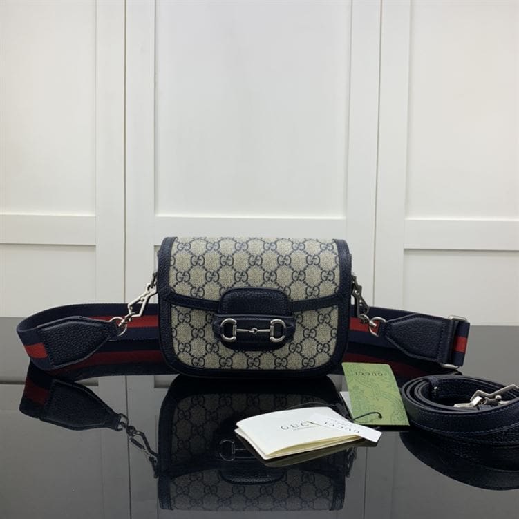 GUCCI HORSEBIT 1955 MINI BAG IN BEIGE AND BLUE GG SUPREME CANVAS – GB11