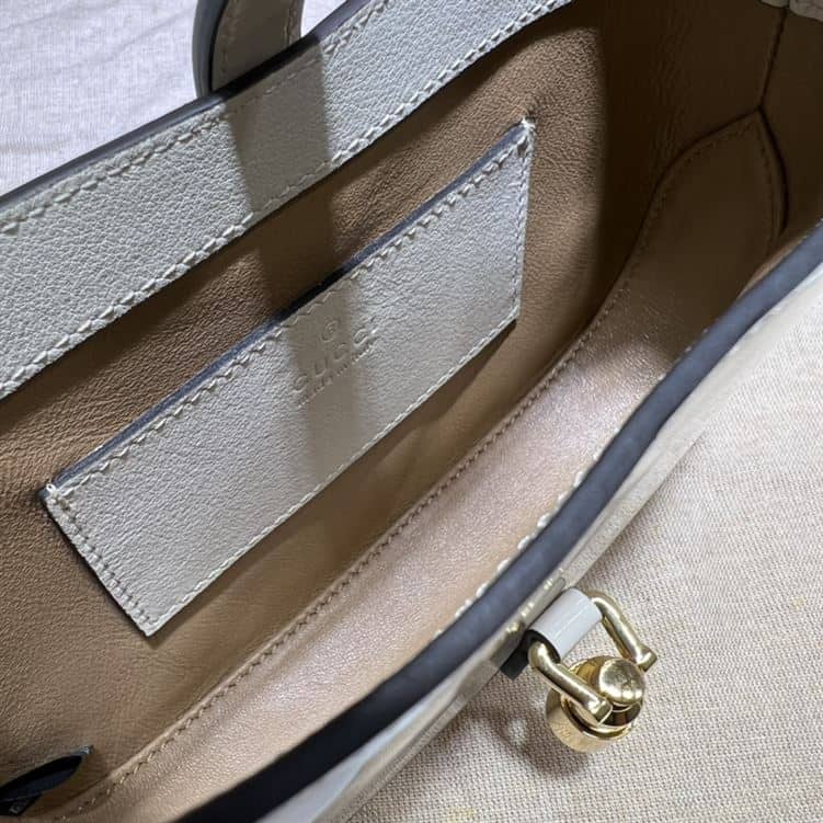 The Gucci Jackie 1961 Mini Shoulder Bag in white patent leather pays homage to a timeless design reimagined for the modern era. Named after Jackie Kennedy, this bag features the signature piston closure and horsebit detail, reflecting Gucci’s heritage of craftsmanship and luxury. The glossy white patent leather adds a contemporary touch, making it a statement piece for any occasion.