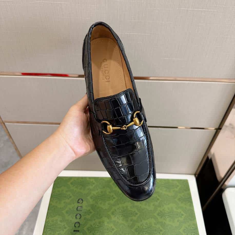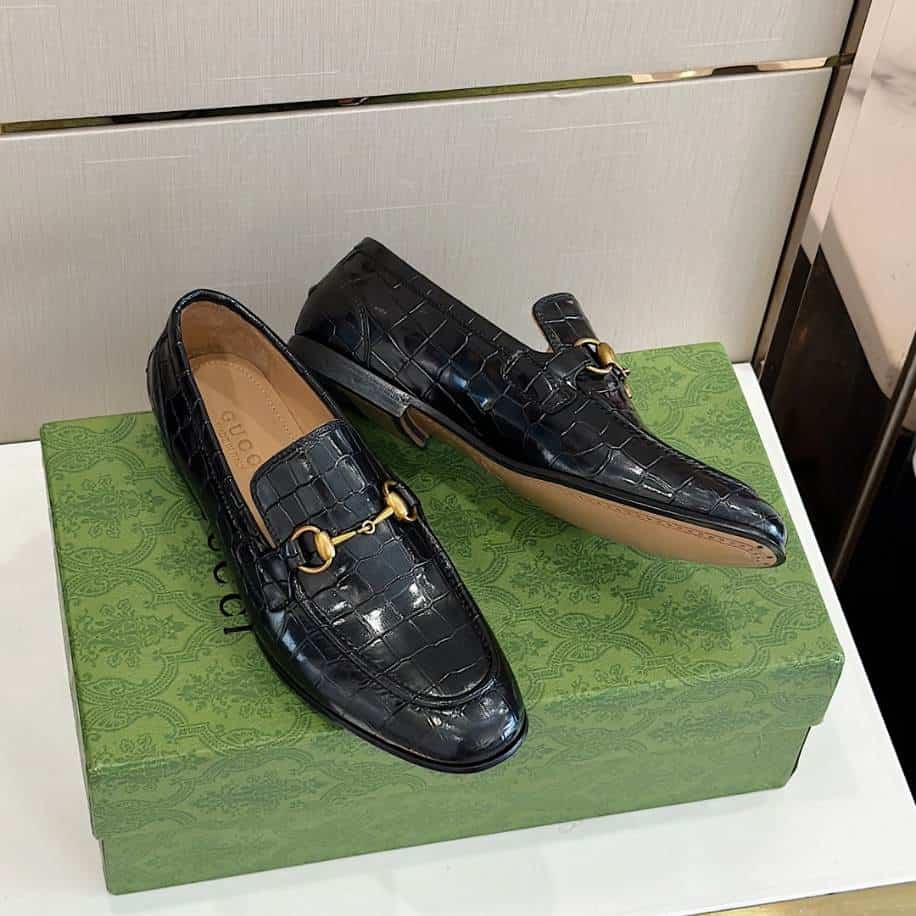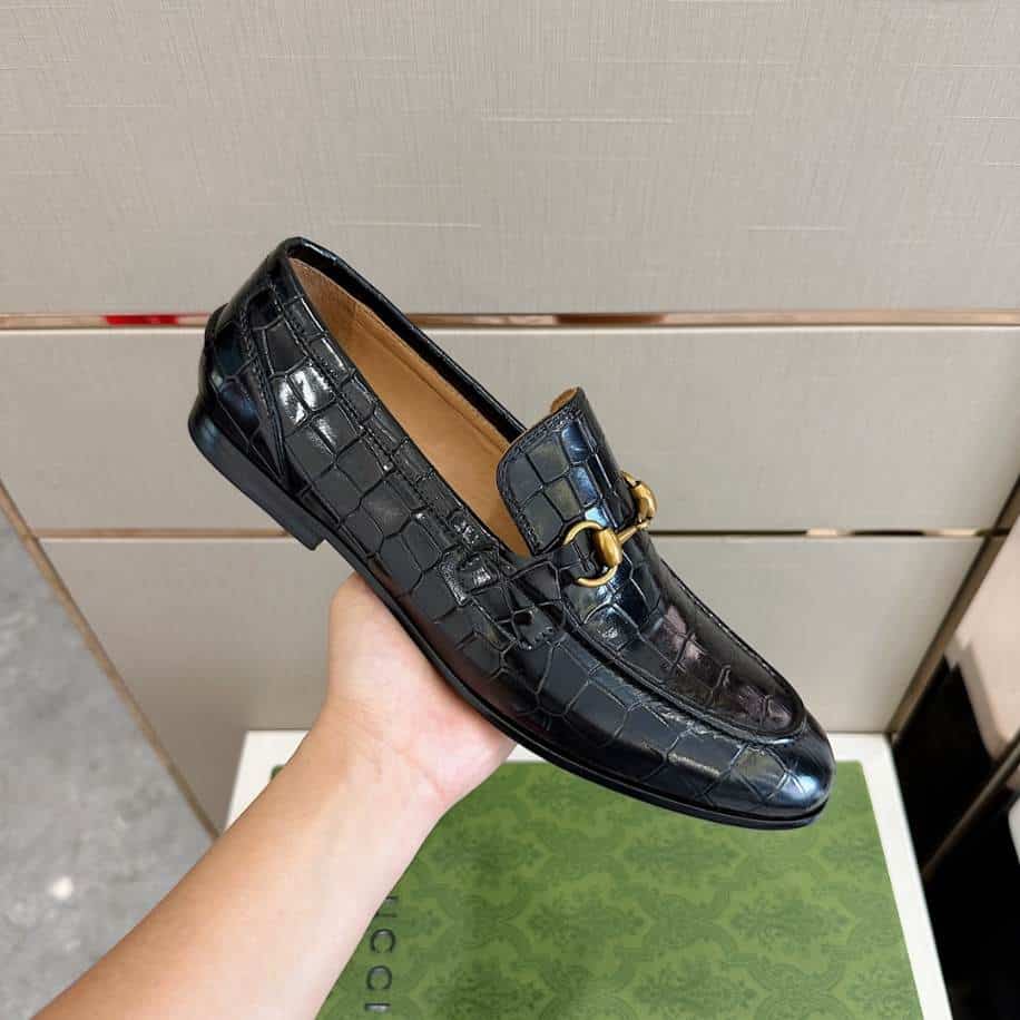The Gucci Jordaan Crocodile Black Loafer replica exudes an air of sophistication, inspired by the luxurious design of the original. Featuring a sleek black finish with crocodile-embossed detailing, these replicas replicate the elegance and timeless appeal of Gucci’s iconic Jordaan loafers. Designed to pair seamlessly with both formal and casual attire. They offer a refined aesthetic at a more accessible price point.