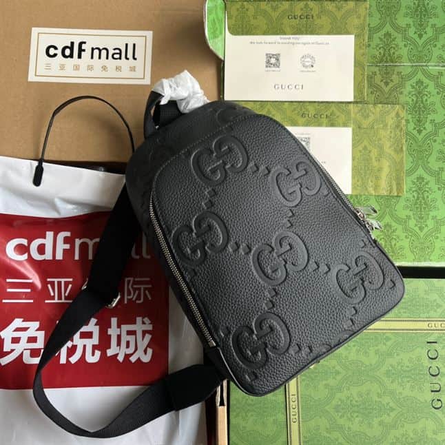 - The Gucci Jumbo GG Crossbody Bag is a bold and fashionable accessory that showcases Gucci’s signature style and impeccable craftsmanship. Featuring the distinctive oversized GG motif, this crossbody bag is crafted from premium materials, offering both durability and luxury. Its compact yet functional design includes a well-organized interior, perfect for carrying daily essentials with ease. The adjustable strap allows for versatile and comfortable wear, making it suitable for any occasion. The Gucci Jumbo GG Bag effortlessly combines modern flair with timeless elegance, making it an ideal choice for those seeking a standout piece to enhance their wardrobe.