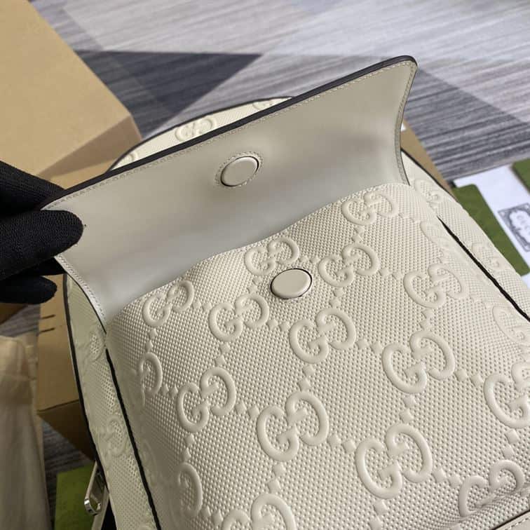 - The adjustable shoulder straps ensure comfort and versatility, making it ideal for both urban commutes and travel. The Gucci Logo Embossed Perforated Leather is a testament to the brand’s commitment to impeccable craftsmanship and timeless elegance, catering to individuals who appreciate refined fashion with a bold edge.