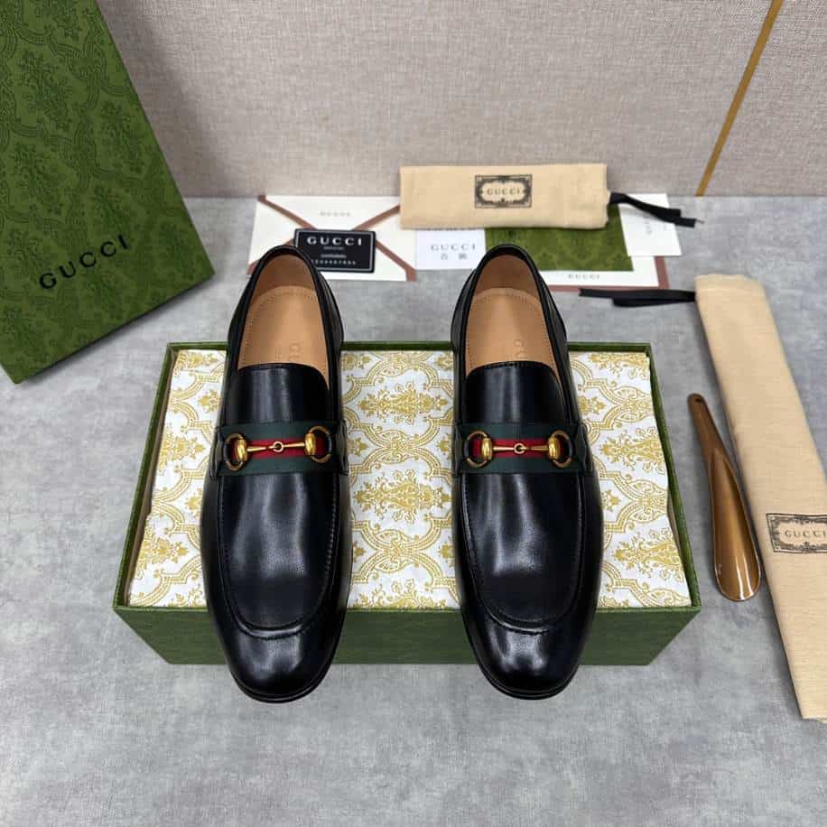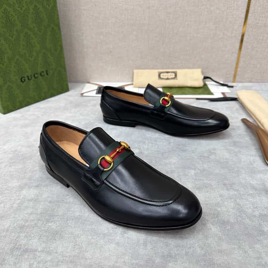 The Gucci Men Horsebit Black Loafer replica delivers a refined and classic aesthetic, echoing the sophistication of the original design. With its sleek black finish and signature horsebit detail. This replica is a versatile addition to any wardrobe, suitable for both formal and semi-casual occasions. Though it may lack the premium craftsmanship of the authentic version, a high-quality replica can provide a comparable look and feel. Making it an appealing choice for those who admire Gucci’s timeless style but prefer a more budget-friendly option.