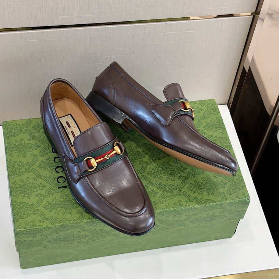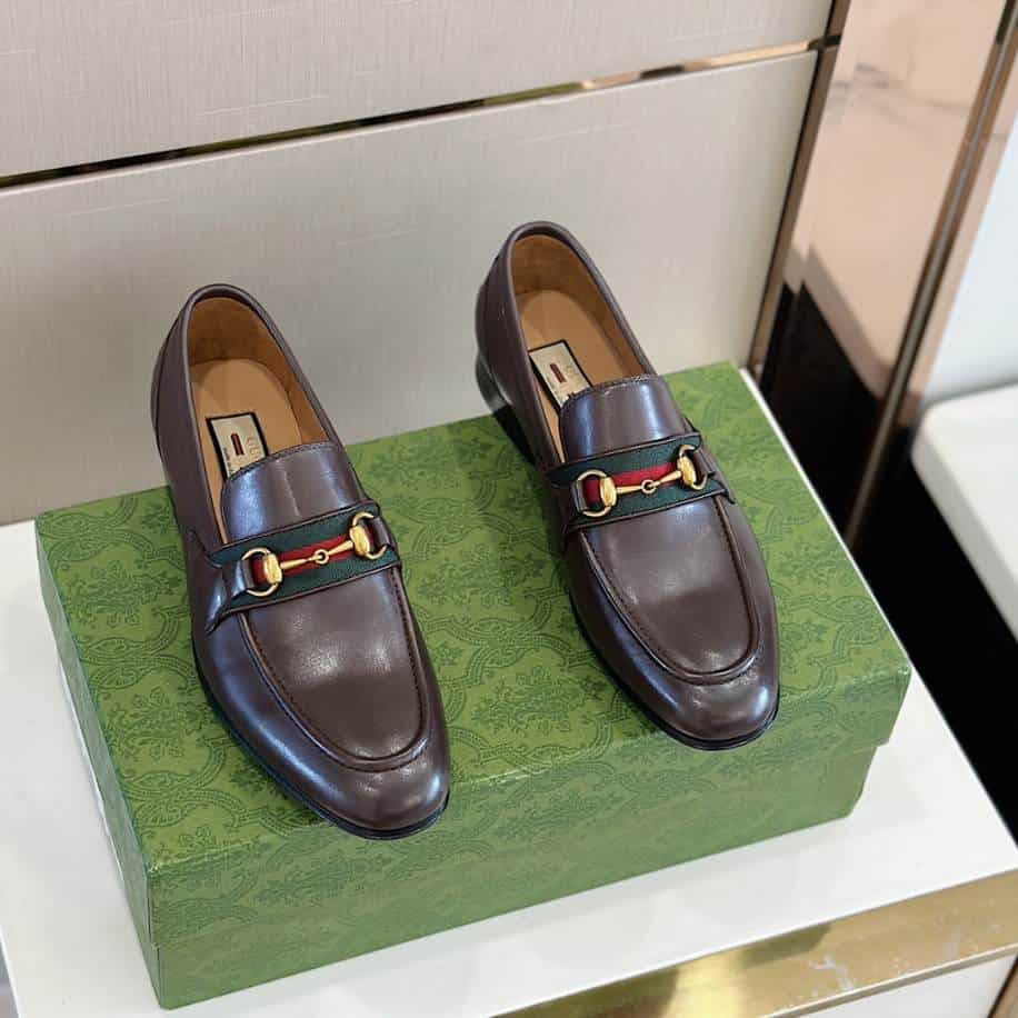 The Gucci Men Horsebit Brown Loafer replica captures the essence of timeless luxury and sophistication at an accessible price. Featuring the iconic horsebit detail and a sleek brown leather design. This replica closely resembles the original, making it a stylish choice for both professional and casual settings. While it may not boast the premium materials of the authentic version, a well-crafted replica offers a similar polished appearance and versatility. Allowing fashion enthusiasts to enjoy the elegance of Gucci without exceeding their budget.
