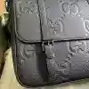 The GUCCI MEN’S JUMBO GG LEATHER MEDIUM MESSENGER BAG BLACK 2023 ; BG091 is a bold and stylish accessory crafted in soft black leather with the signature oversized GG pattern.