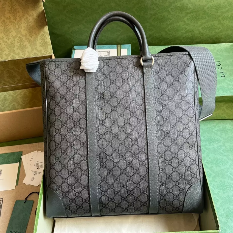 Discover the elegance of the GUCCI MEN’S OPHIDIA GG CANVAS MEDIUM TOTE BAG GREY 2023 ; BG097, a statement piece crafted for the modern man.