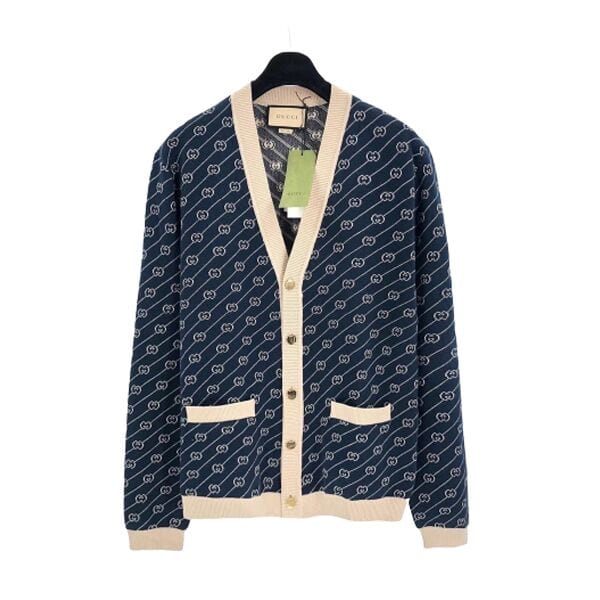 #GucciFashion#DesignerKnitwear#LuxuryCardigan#NavyAndOffWhite#StatementStyle