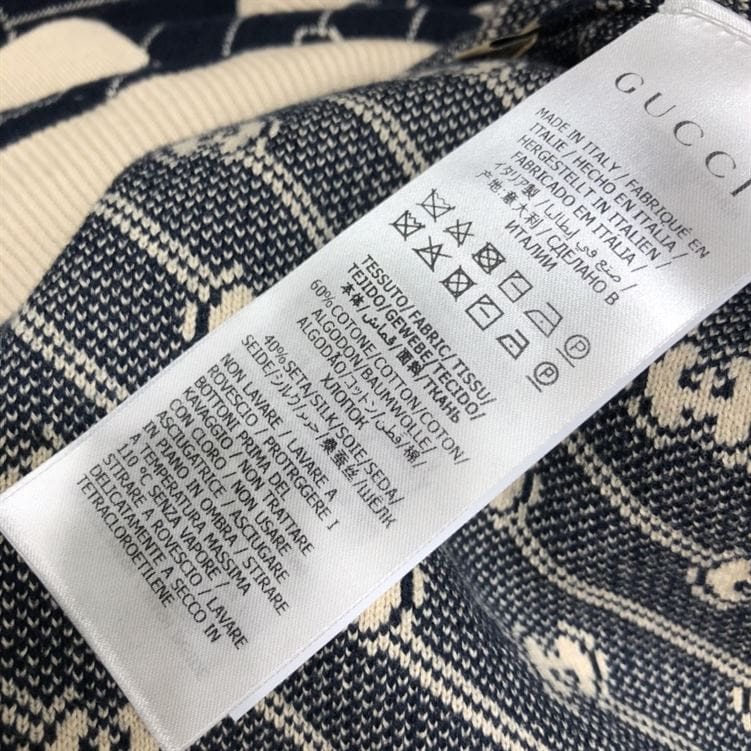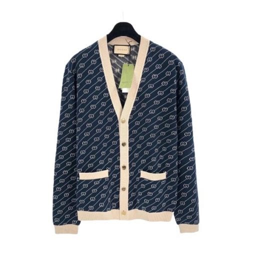 GUCCI NAVY & OFF-WHITE GG JACQUARD CARDIGAN – GCJ003